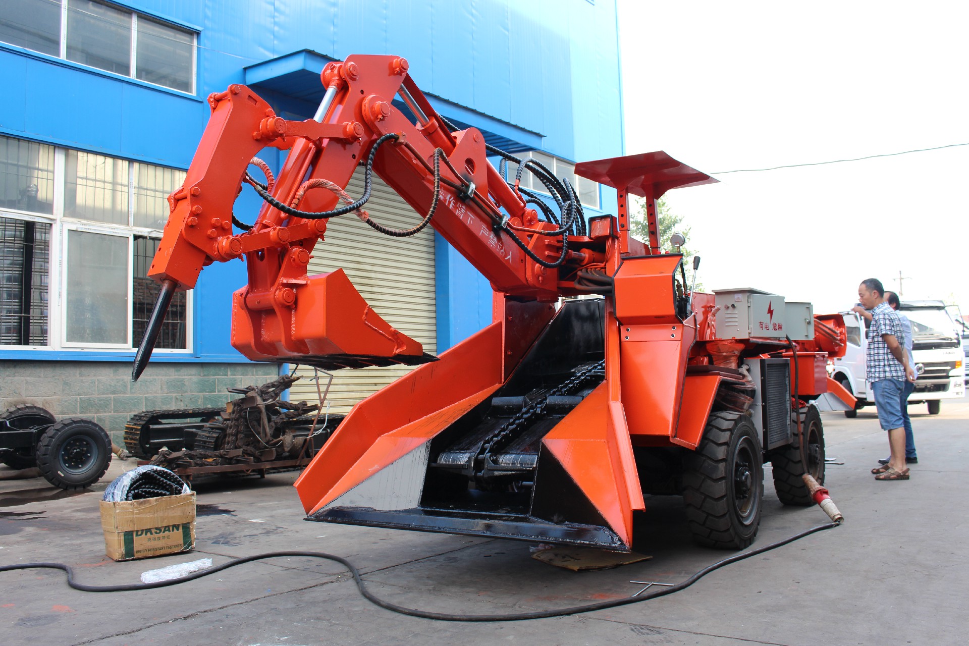 挖掘系統(tǒng)大小臂配有標準型和加長型,標準型大小臂長度為1.05m和1.0m,加長型大小臂長度為1.2m和1.25m,供用戶根據(jù)巷道截面大小定制選裝。建議2,6×2.6m2截面巷道選用標準型大小臂,3.0×3.0m2及以上截面巷道選用加長型大小臂,以提高工作效率。