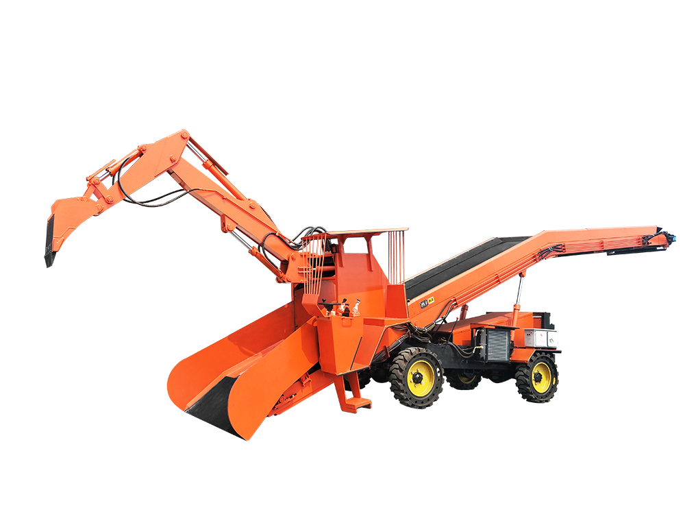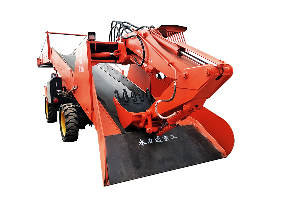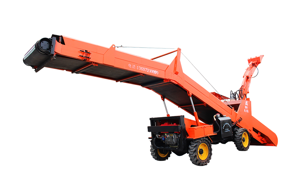 本機工作機構設計參考挖掘裝載機形式,由工作機構扒取物料,并通過自身特制加高型皮帶輸送系統進行轉載,從尾部卸入礦車或其它運礦設備中去。采用類似小松 PC80 挖掘機液壓原理,采用全液壓傳動和系統負載傳感控制及先導閥操作;液壓油泵、軟管總成、24 度錐接頭、液壓油濾芯均為原裝進口;靈活的操作性是本機作業的核心,借助最佳的液壓系統,均衡分配油量,令鏟斗、小臂、大臂、動臂進行靈活、快捷、高效的作業,實現真正的隨心所欲;強勁的挖掘力在任何條件下都能在短時間內發揮出色的工作效率及卓越的性能;工作平穩無沖壓,設計先進,工作可靠,操作簡單,維修方便。會開挖掘機的操作員和會維修挖掘機的鉗工,均可對本機進行操作和對本設備進行維護與保養。用戶無任何后顧之憂。